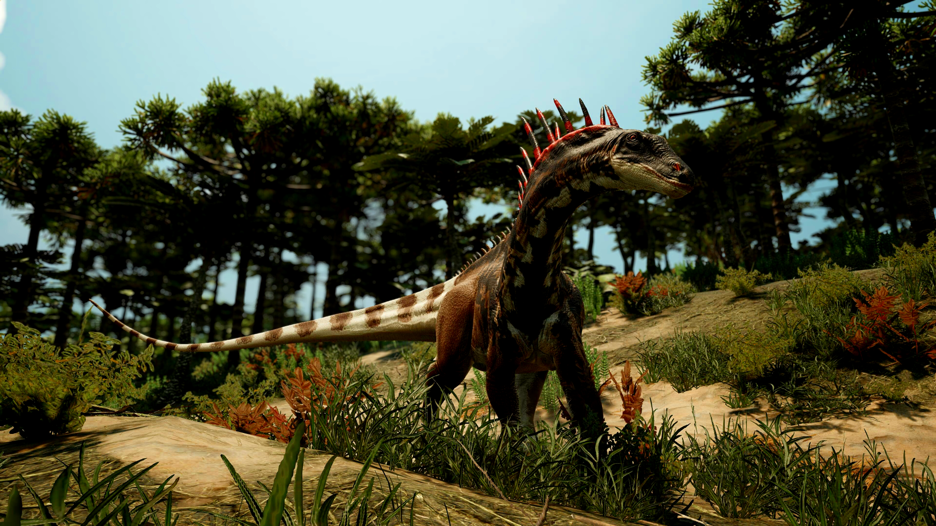L'Amargasaurus ne cherche pas l'ombre. Il se nourrit de la lumière, là où les plaines sont brûlantes et où le ciel ne pardonne rien. On les appelle les Lames du Soleil. Leur silhouette est une ponctuation sur l'horizon, couronnée par une double rangée d'épines qui fendent l'air. Quand ils se déplacent, le reflet du jour sur leur cou semble briser la lumière en mille éclats. Ce n'est pas une parure, c'est un avertissement gravé dans l'os. Ils ne reculent pas devant la chaleur, ils l'absorbent. Leur défense est purement visuelle jusqu'à ce qu'elle devienne fatale. Un mouvement de cou, un battement de leurs voiles de peau, et l'éclat devient une menace physique. S'approcher d'eux, c'est s'exposer à une forêt de lances qui brillent sous le zénith. Sur Primalis, certains se cachent pour survivre. Eux, ils s'exposent pour dominer. Car avant d'atteindre leur chair, il faut d'abord affronter l'éclat de leurs lames.