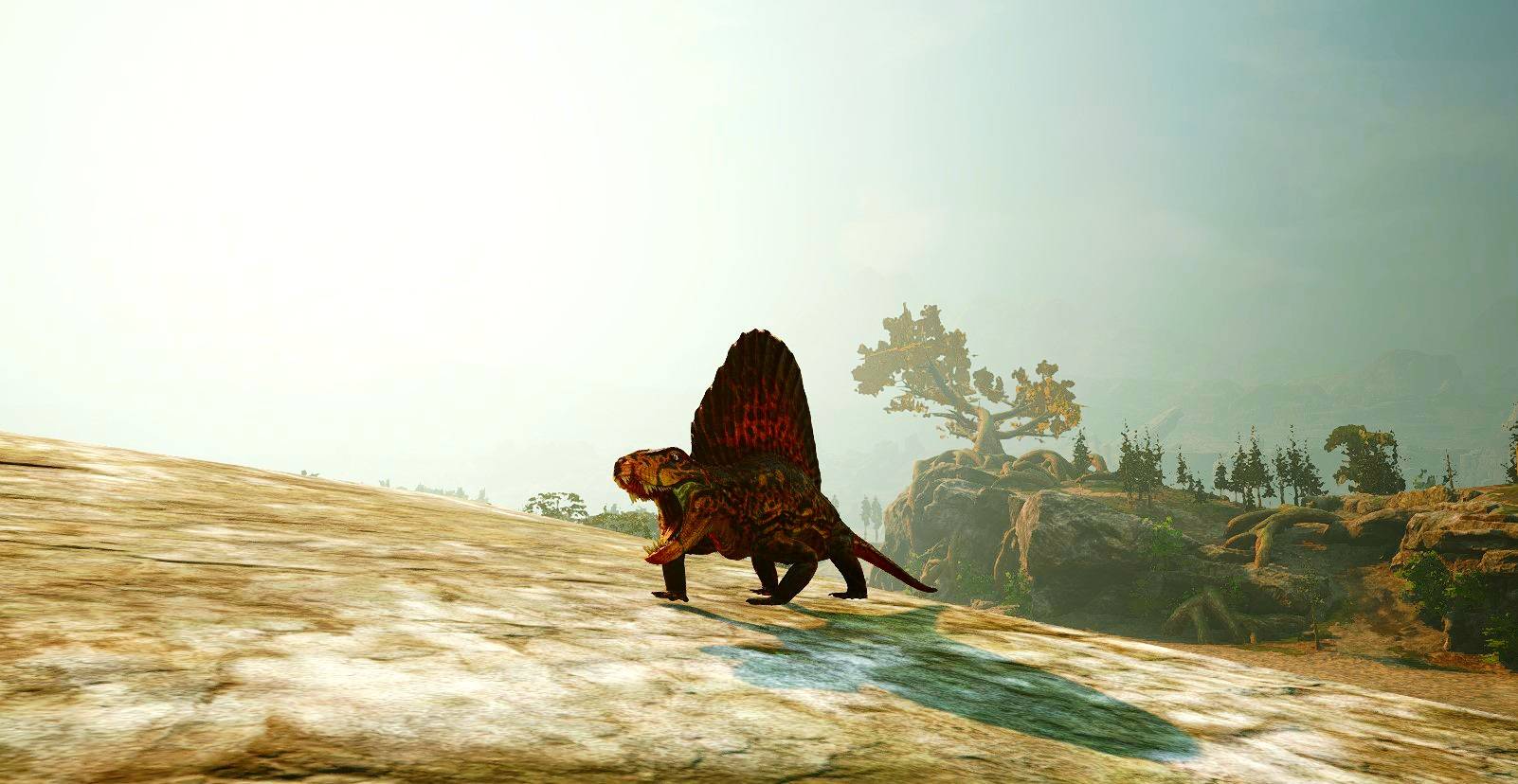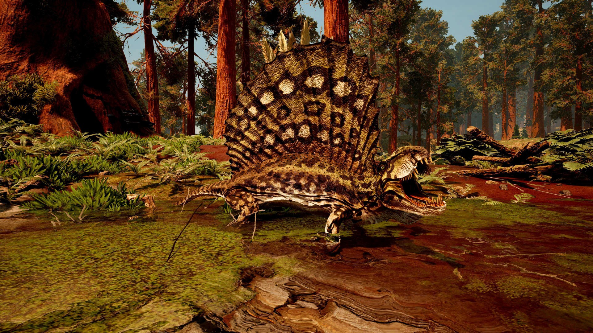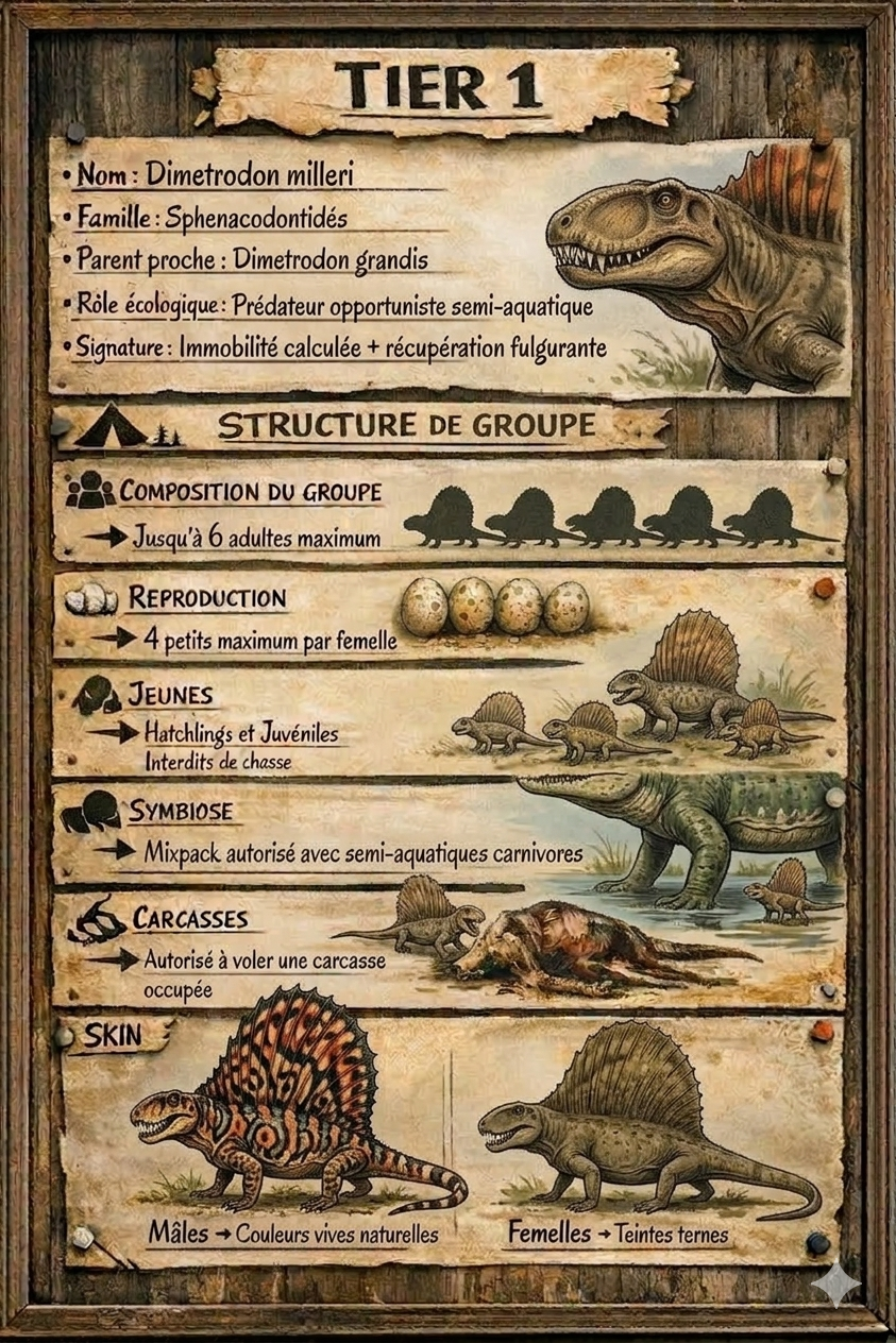 L'aube se lève lentement sur Primalis. Les brumes s'élèvent des terres encore humides, glissant au-dessus des marais comme des draps pâles abandonnés par la nuit. La lumière naissante traverse cette brume en filaments dorés… et soudain, quelque chose la capte. Une silhouette haute. Une crête tendue vers le ciel. Un voile vivant. Le Dimetrodon milleri est arrivé. Sa grande voile dorsale fend les nappes de brouillard comme une proue silencieuse. Lorsque les premiers rayons du soleil la frappent, elle s'embrase de teintes chaudes, rouges et cuivrées. Ce n'est pas un hasard. Il attend l'aube. Il la cherche. Il en dépend. Car sur cette île encore fraîche et instable, la chaleur est une richesse. Et le Dimetrodon sait la capturer, la retenir, l'utiliser. Là où d'autres frissonnent dans l'humidité du matin, lui se dresse face au soleil, immobile, absorbant l'énergie du jour comme un rituel ancien. C'est ainsi que le lore prend sens. Les « Voiles de l'Aube » ne sont pas qu'une image poétique. Elles sont la première chose que la lumière touche. La première forme vivante à émerger des brumes. Lorsque les autres créatures s'éveillent, il est déjà prêt. Réchauffé. Lucide. Affamé. Primalis renaît sous un ciel encore fragile. Et à chaque lever du soleil, une voile se dresse dans la brume… annonçant que l'aube n'est pas seulement un début. C'est un avantage.