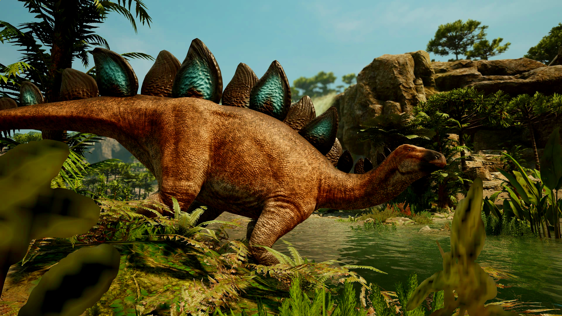 Au début, certains voyageurs de Primalis ont cru à une illusion. Au détour de certaines vallées couvertes de fougères et de plantes épaisses, ils pensaient apercevoir d'étranges formations dressées dans le paysage. Une ligne sombre, irrégulière, presque semblable à une barrière naturelle faite de pointes et de plaques. Un mur vivant. Mais lorsque la terre commence à trembler légèrement, la vérité apparaît. Ce ne sont pas des rochers. Ce sont les Stegosaurus. Lorsqu'ils se déplacent en groupe, leurs larges plaques dorsales forment une silhouette imposante qui dépasse la végétation. Alignés les uns derrière les autres, ils avancent lentement à travers les plaines et les fougères, créant une véritable barrière mouvante que peu de créatures osent défier. Et si un danger s'approche trop près… Alors les queues se lèvent. Leurs longues pointes, redoutables et précises, transforment cette muraille paisible en une défense impénétrable. À Primalis, certains prédateurs chassent en meute. Mais certains herbivores ont appris une autre stratégie : devenir un obstacle que rien ne peut franchir. C'est ainsi que ces géants ont gagné leur nom. Les murs d'épines.