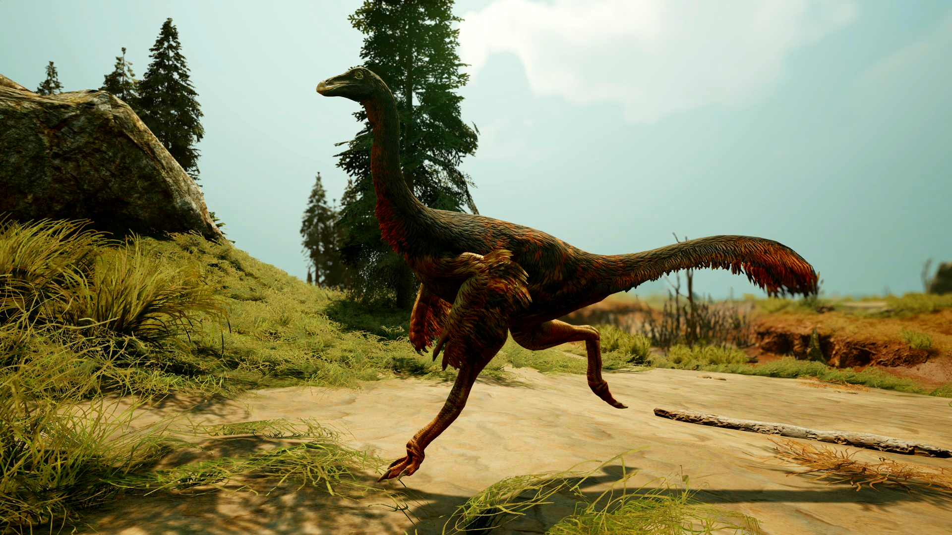 Il n'y a rien de plus exaspérant sur Primalis que la silhouette d'un Struthiomimus à quelques mètres de distance. Il ne fuit pas par terreur, il fuit par jeu. On les appelle les Coureurs de la Plaine. Là où d'autres se cachent en retenant leur souffle, le Struthiomimus s'expose. Il s'approche des prédateurs, pousse un cri moqueur, et attend le dernier instant pour s'élancer. C'est un provocateur né, un athlète de la steppe qui utilise son agilité pour ridiculiser ceux qui tentent de le transformer en repas. Sa survie est une insulte quotidienne à la loi du plus fort. Sa défense, c'est l'arrogance. D'un coup de patte agile ou d'une feinte de corps, il laisse ses assaillants mordre la poussière, avant de s'arrêter un peu plus loin pour les observer, l'air de dire que l'effort était pathétique. Il ne court pas seulement pour sauver sa peau, il court pour prouver qu'il est intouchable. Il n'habite pas la plaine, il la domine par l'ironie. Sur Primalis, la force brute s'épuise souvent contre le vent. Les Coureurs, eux, savent que la meilleure façon de ne pas être mangé, c'est de donner envie à l'adversaire d'abandonner par pur épuisement moral. Car rien n'est plus fatigant que de chasser une cible qui vous regarde en riant.